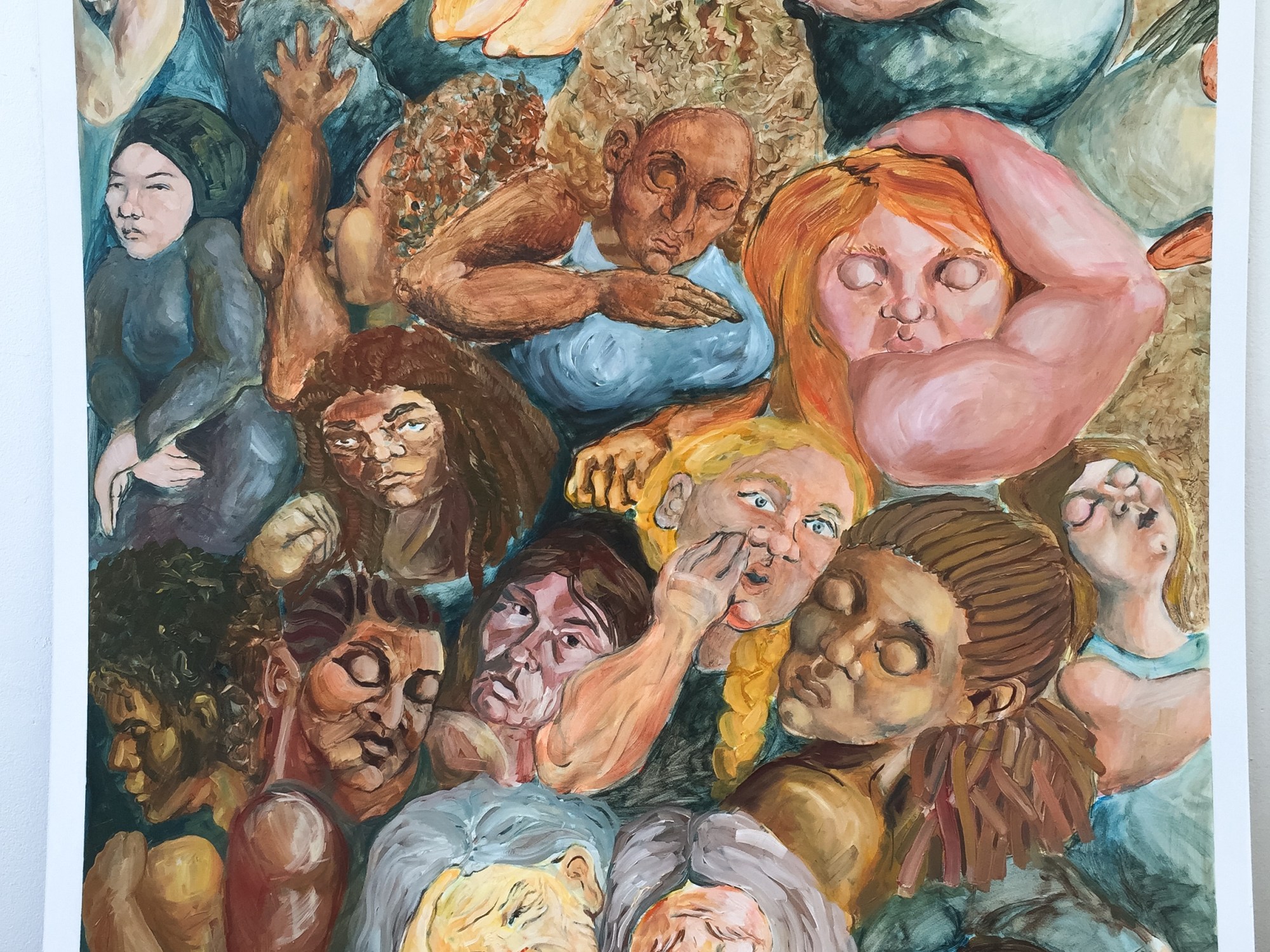 As I worked on the painting, each week I would bring photos of the work in progress and discuss it with the women. We would talk about color, the figures and the background, the emotional content, the style, the aesthetic qualities.